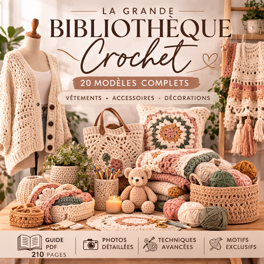 Une collection exceptionnelle de modèles crochet pour créer vêtements, accessoires et décorations. Ce guide premium regroupe des projets variés pour développer vos compétences et réaliser des pièces uniques.